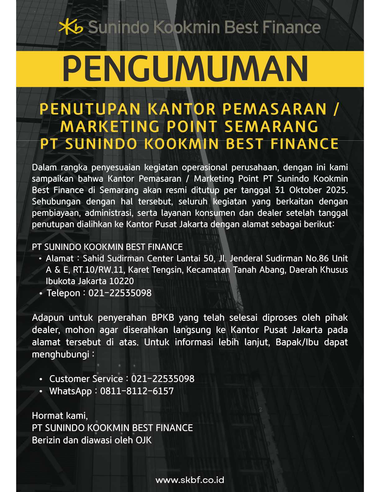 PT. Sunindo Kookmin Best Financeis licensed and registered with OJK (Otoritas Jasa Keuangan)